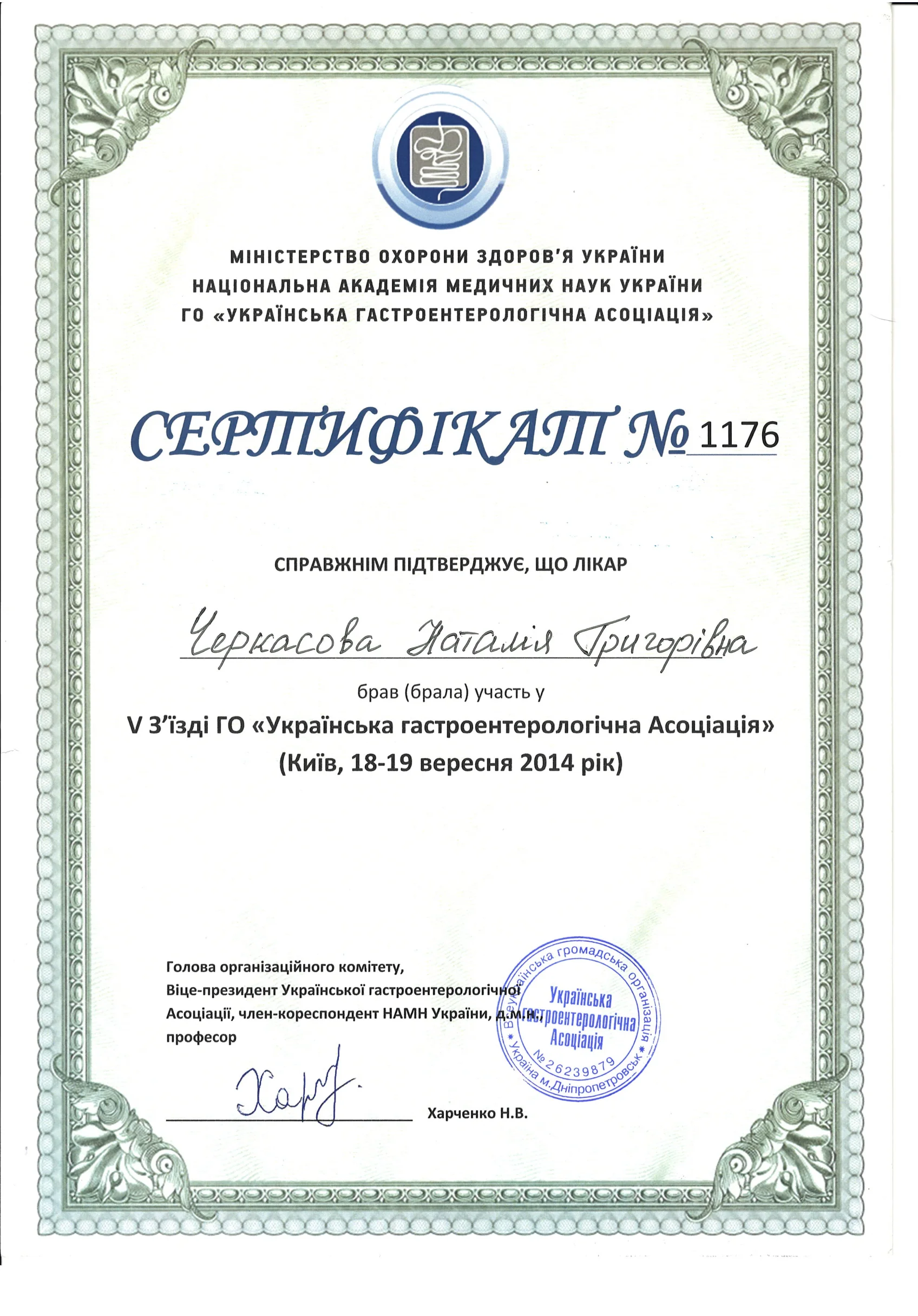 - V Съезд ОО “Украинская гастроэнтерологическая Ассоциация” (2014, г. Киев)