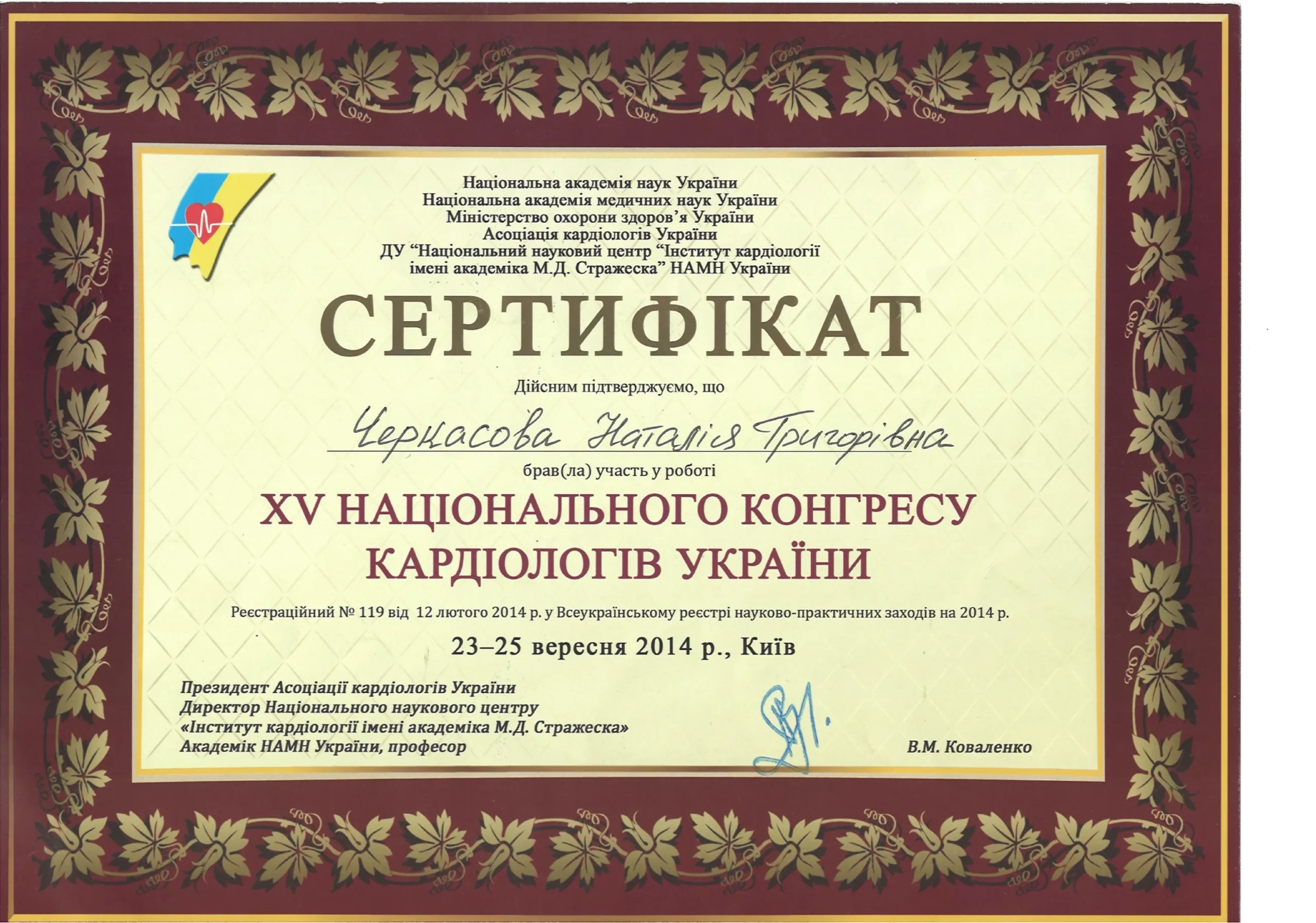- XV Национальный конгресс кардиологов Украины (2014, г. Киев)